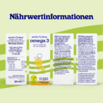 Diese enthält ungefähr die Menge an Omega-3, die einem kleinen Stück Hering (Spieß) entspricht. Ältere Kinder (ab 7 Jahren) können bei Bedarf eine doppelte Dosis einnehmen. Für sie und für Erwachsene kann es günstiger sein, die 150-ml-Flasche in Betracht zu ziehen.