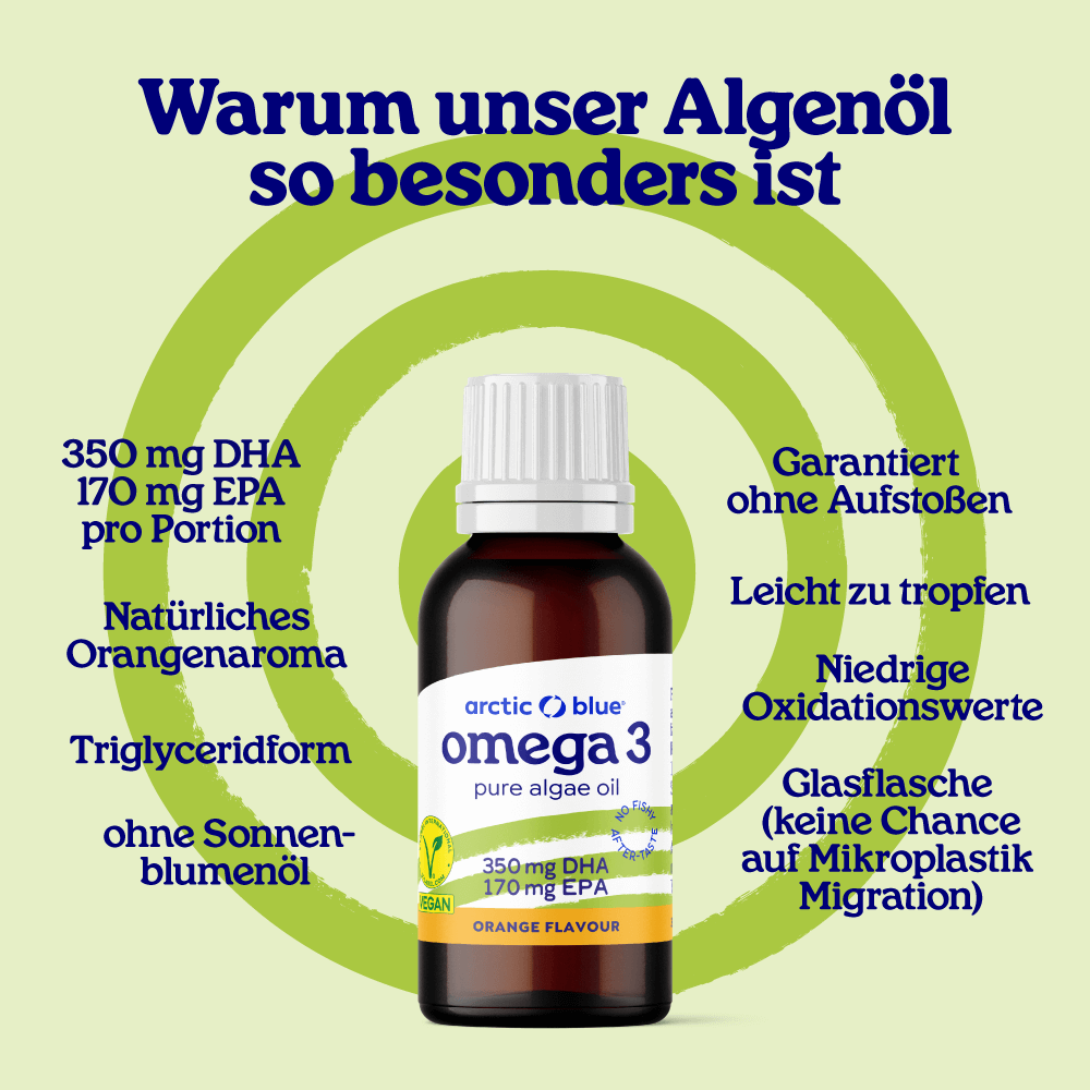 Enthält wertvolle Omega-3-Fettsäuren (DHA & EPA), die die Gehirnfunktion und die Gesundheit der Augen und des Herzens unterstützen.