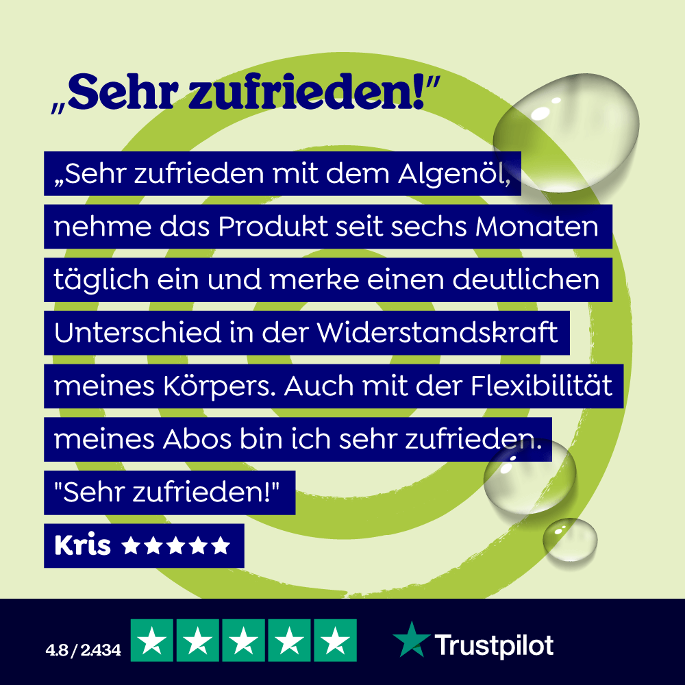 Es ist wissenschaftlich erwiesen, dass diese Menge an EPA und DHA gut für das Herz**, gut für die Sehkraft* (hilft, scharf zu bleiben) und gut für die Gehirnfunktion* ist. Die positive Wirkung wird bei einer täglichen Einnahme von 250 mg DHA* oder 250 mg EPA/DHA** erzielt.
