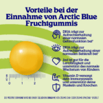 Wir haben uns dieser Herausforderung gestellt und die Nachteile beseitigt. Die Arctic Blue Omega-3-Gummis werden mit einer speziellen Emulsionstechnologie hergestellt, die das Omega-3-Algenöl zur Hauptzutat macht (d.h. kein Zucker oder ein Hilfsstoff) und 1 Gummibärchen enthält satte 250 mg DHA. Das ist die 4-fache Menge (DHA+EPA) im Vergleich zu vielen anderen Omega-3-Gummis. Vergleichbar mit den Omega-3-Fettsäuren aus 1 Bissen Hering.