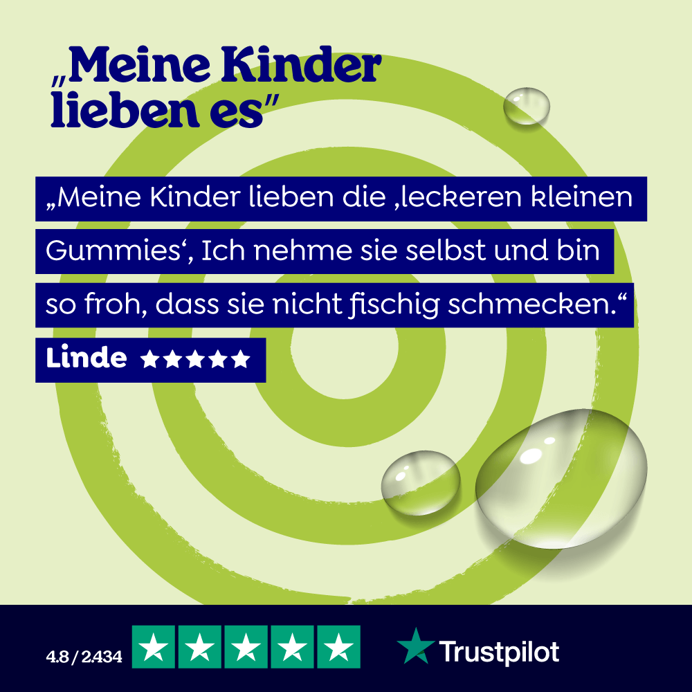 Gummibärchen sind wegen ihres Geschmacks beliebt, aber leider haben sie auch Nachteile. Sie enthalten oft Zucker und viele Kalorien, kleben an den Zähnen und an der Innenseite des Glases. Außerdem enthalten die Omega-3-Varianten oft seltsam wenig Omega-3... sehr schade.