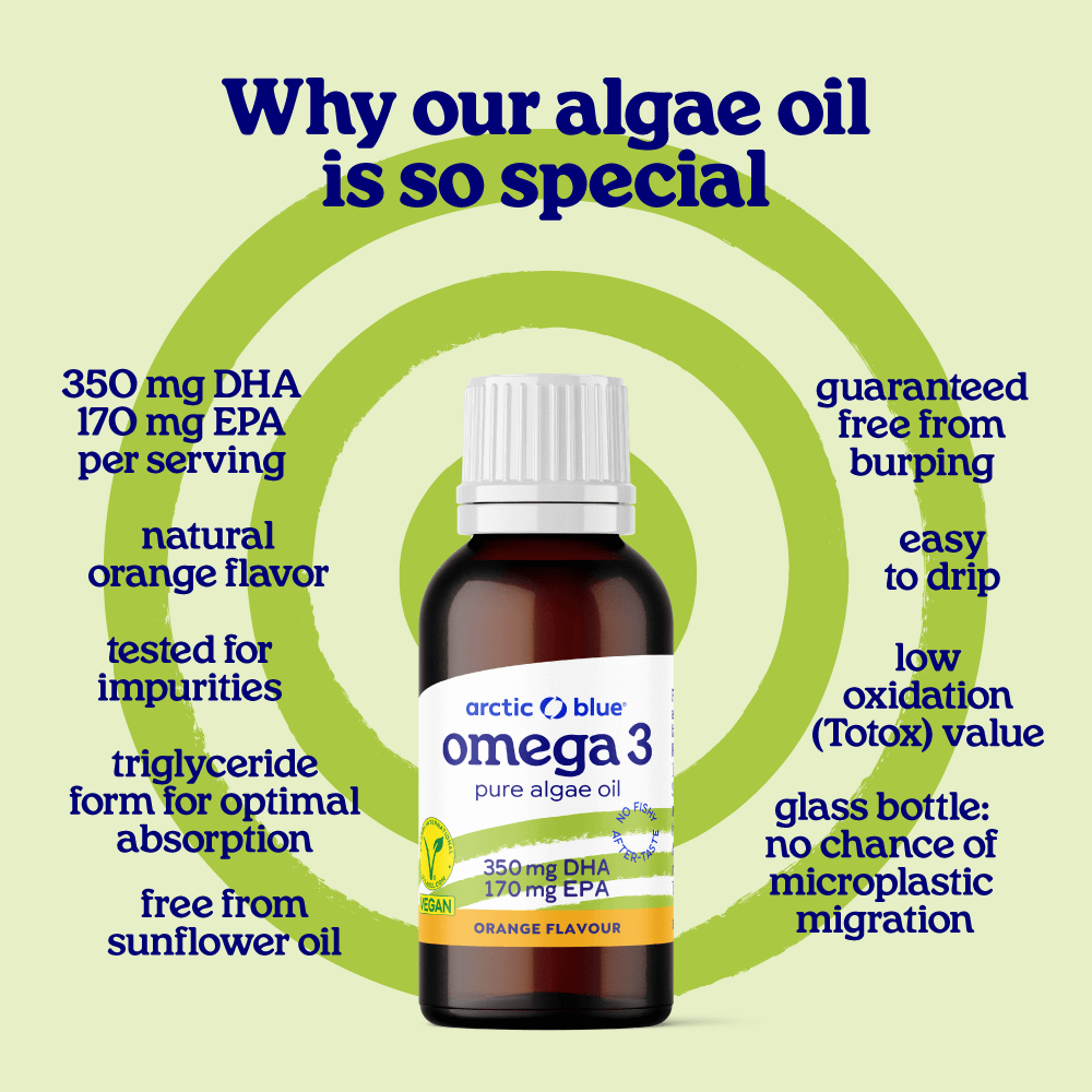 What if your child is still too small to swallow Omega-3 algae oil capsules? Or if capsules are just not comfortable to swallow? Then the dropper bottle can be a godsend.