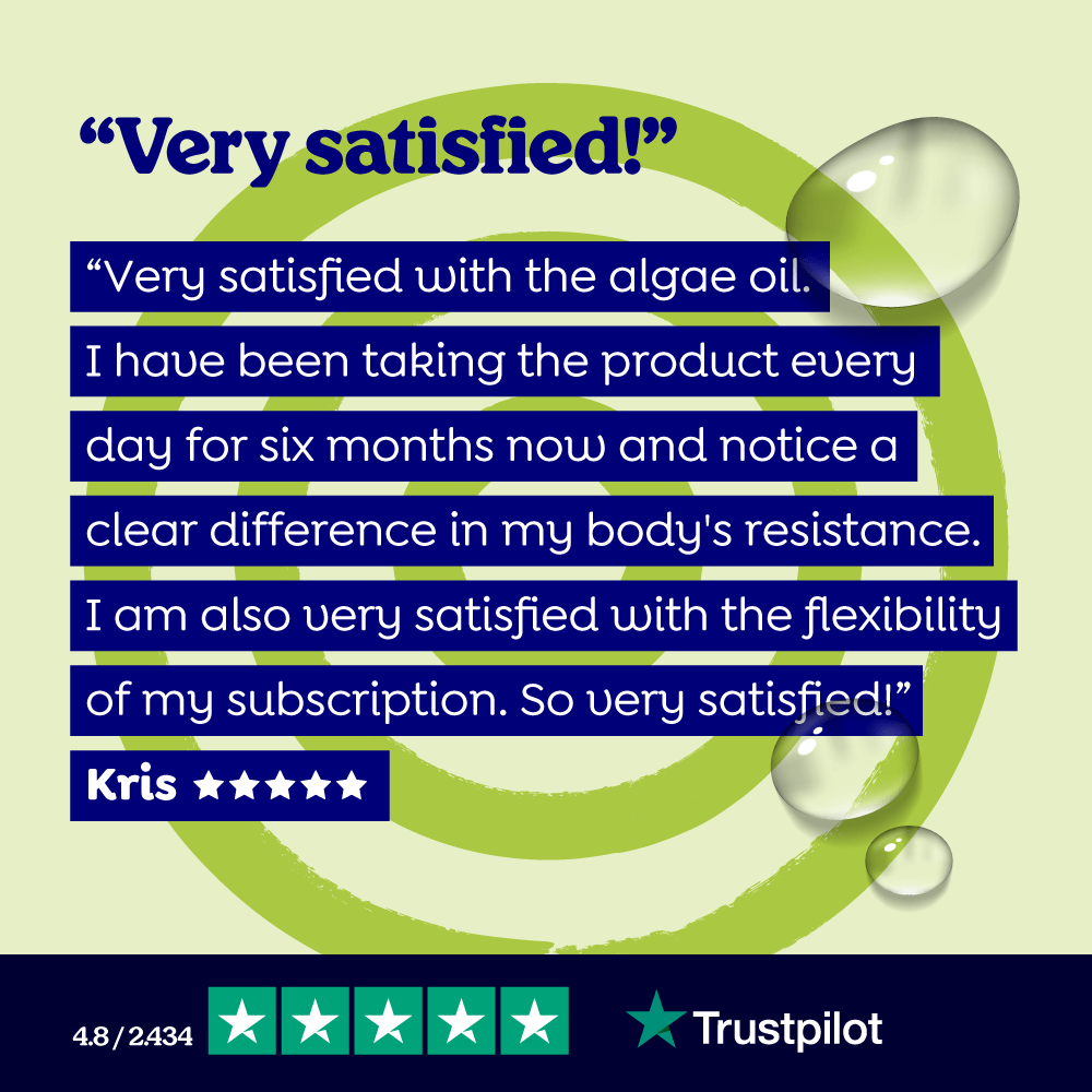 It has been scientifically proven that this amount of EPA and DHA is good for the heart**, good for your eyesight* (helps to stay sharp) and good for brain function*. The beneficial effect is obtained with a daily intake of 250 mg of DHA* or 250 mg of EPA/DHA**.