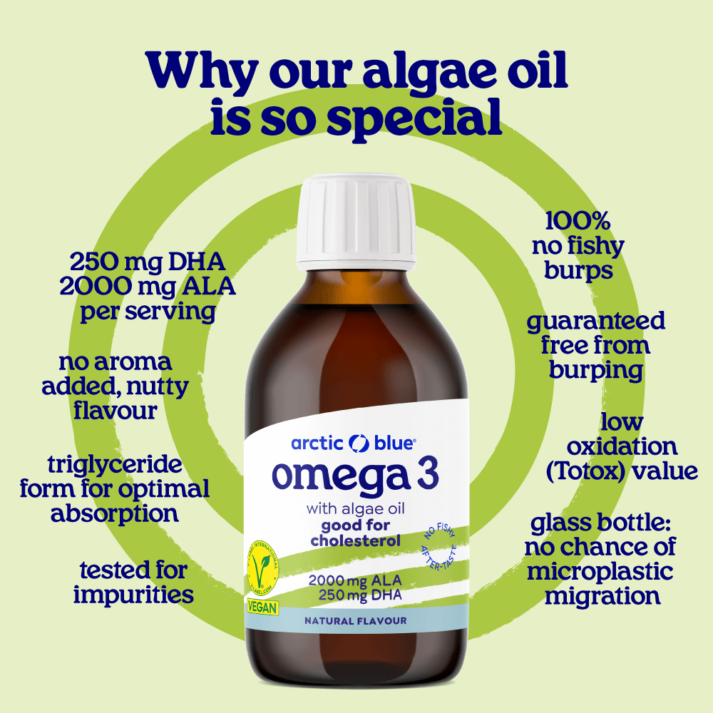 Algae oil is the fish-free version of fish oil. Algae are the only plants that contain the same Omega-3 fatty acids as fatty fish. This also means that these unsaturated fats are just as susceptible to oxidation as in fish oil. So when algae oil is old or less fresh, it can start to smell. Our algae oil goes into the bottle in good condition and is also protected by the natural antioxidants of freshly pressed flaxseed oil (which itself contains plant Omega-3 fatty acids). Nature is doing its job....