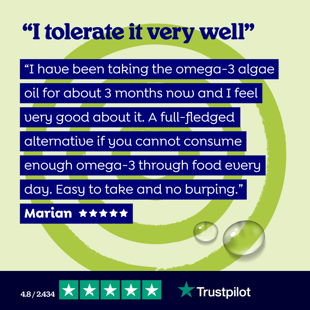 The algae oil is made by the Dutch company DSM and bottled for us in Norway.