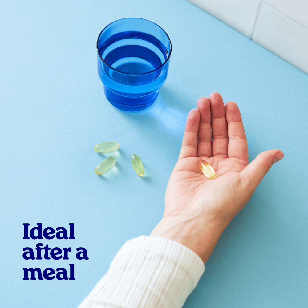 Best after a meal that includes fats. The Omega-3 mixes into this and is then optimally absorbed.