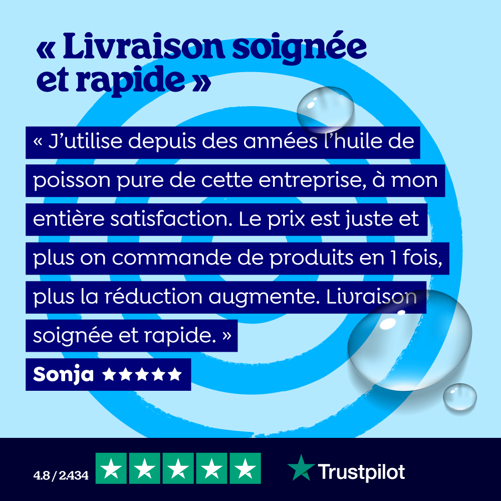 Oui, ta consommation personnelle par jour est de 0,15 ml d'huile x ton poids corporel. Les personnes ayant des besoins spécifiques peuvent se voir conseiller un apport plus important par le médecin ou le thérapeute. Veille toutefois à ne pas dépasser le maximum quotidien de 5 000 mg d'EPA+DHA (ce qui correspond à 5 cuillères de mesure).