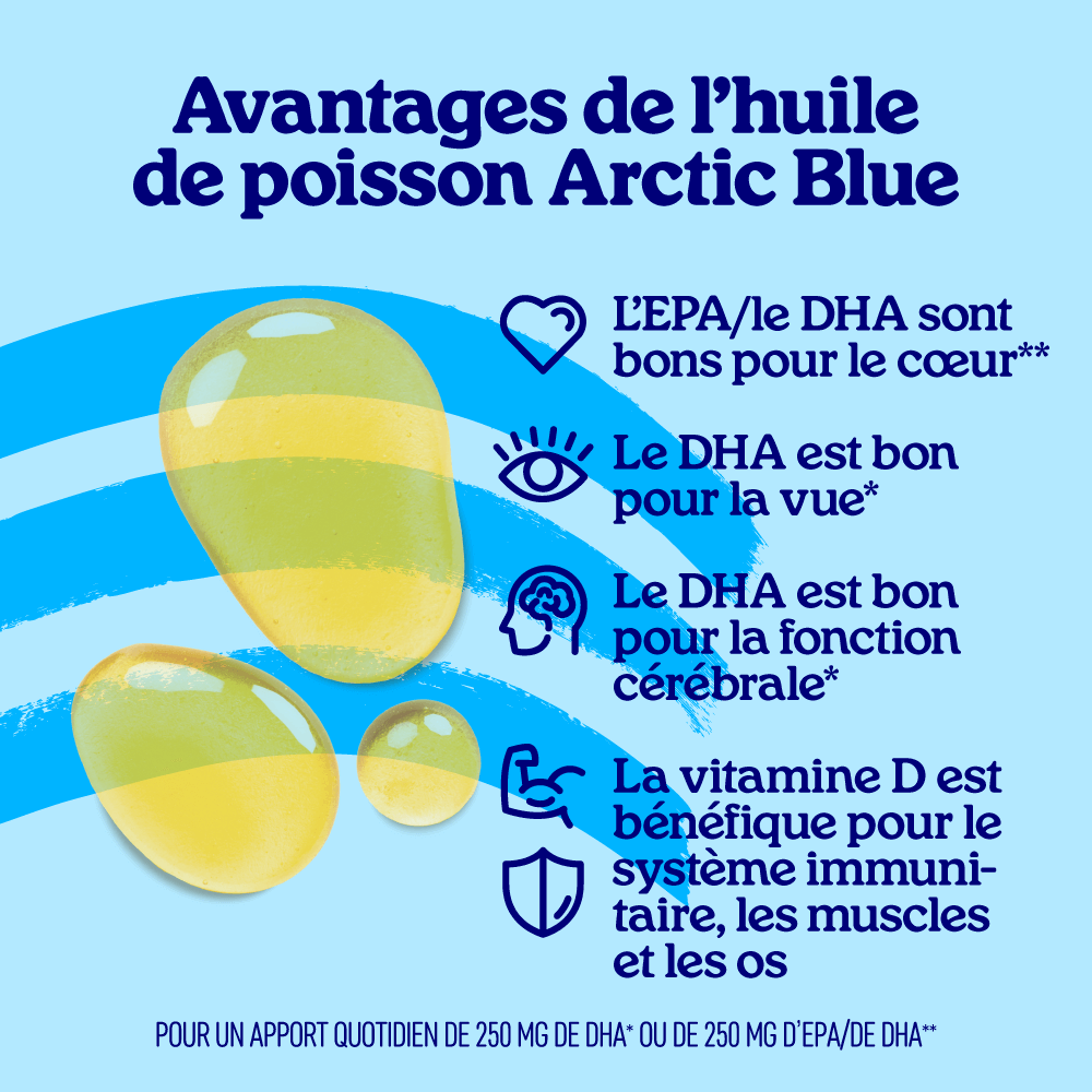 Avec les acides gras oméga-3 DHA et EPA + la vitamine D3, bons pour les fonctions cérébrales, les yeux, le cœur, les os, les fonctions musculaires et le système immunitaire.