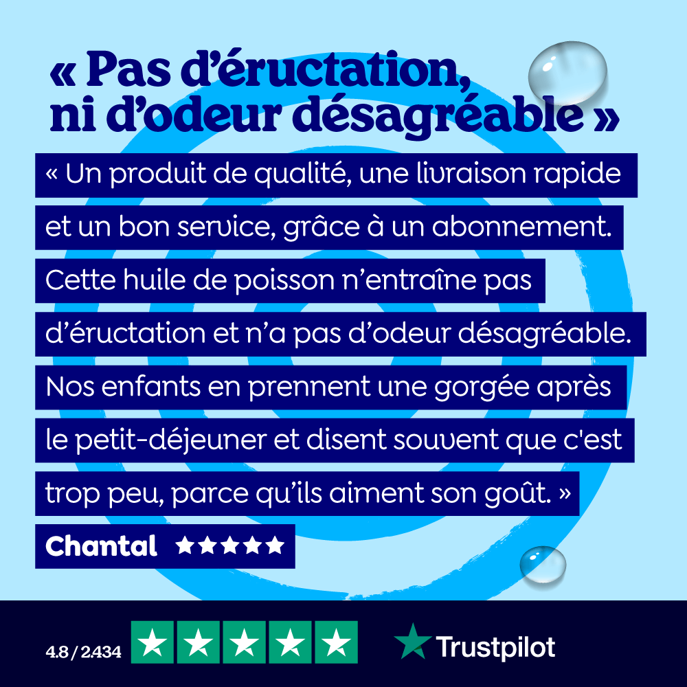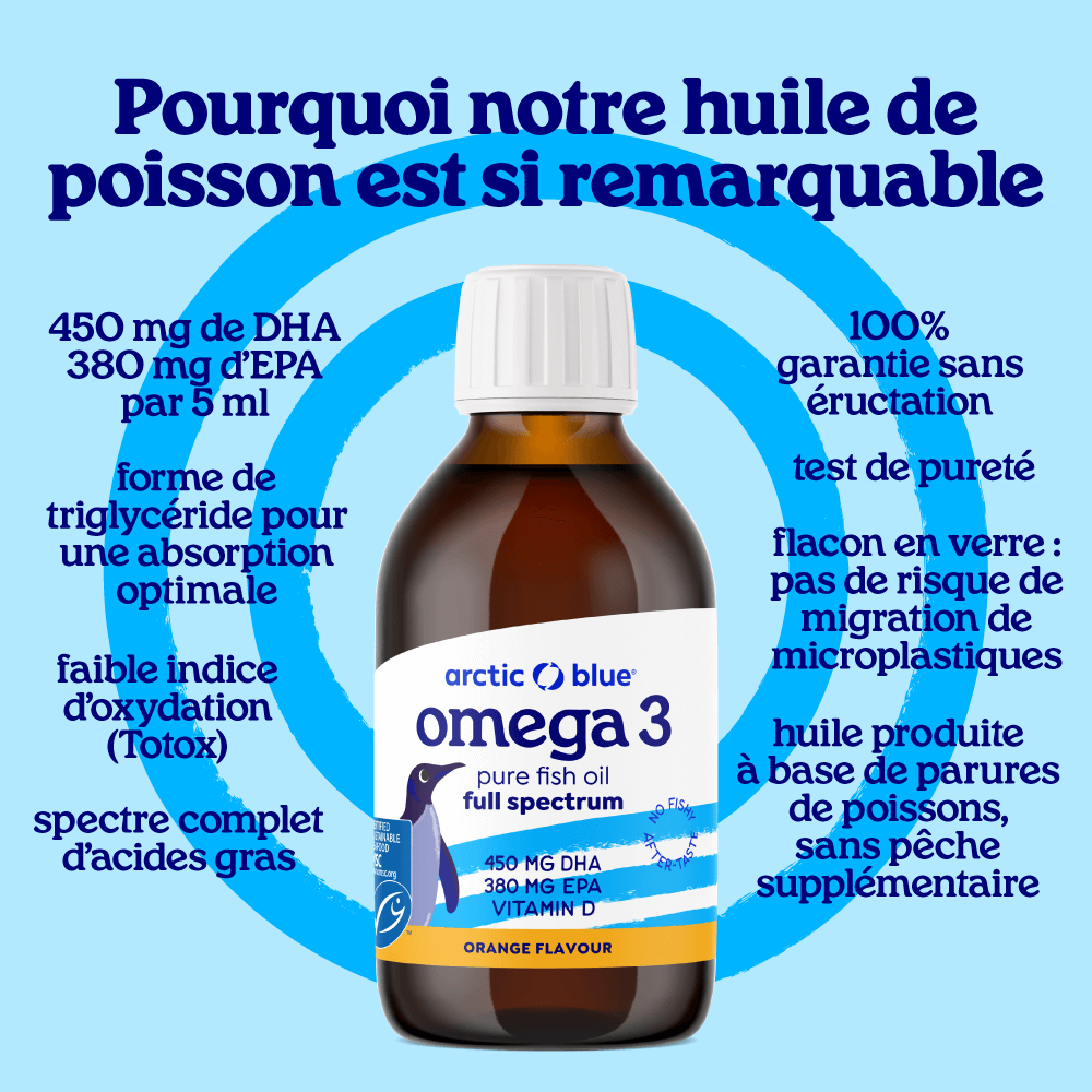 Les graisses oméga-3 font partie de nos nutriments essentiels. Cela signifie que, comme pour la plupart des vitamines, tu dois les obtenir par l'alimentation. Comme beaucoup de gens n'aiment pas les vrais poissons gras (hareng, maquereau, sardines), un supplément d'oméga-3 comme l'huile de poisson ou l'huile d'algue est utile.