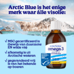 Wilde vette vis, zoals haring, sardientjes of makreel, is een hele goede bron van waardevolle onverzadigde vetzuren Omega-3 EPA en DHA én van vitamine D. Magere vis daarentegen (kibbeling, vissticks, tilapia en pangasius) bevat deze belangrijke voedingsstoffen nauwelijks. Pure Arctische MSC Visolie met vitamine D is er voor iedereen die moeite heeft met vette vis. De dagdosering (2,5 ml) (één dessert- of koffielepel) Pure Arctische Visolie bevat de Omega-3 vetten van (omgerekend) ongeveer één hele haring. Het is wetenschappelijk bewezen dat deze hoeveelheid EPA en DHA goed is voor het hart**, goed is voor je gezichtsvermogen* (helpt om scherp te blijven zien) en goed is voor je hersenfunctie*. Het gunstige effect wordt verkregen bij een dagelijkse inname van 250 mg DHA* of 250 mg EPA/DHA**. Dit zijn wettelijk goedgekeurde gezondheidsclaims. Maar liefst 20% van het vet in onze hersenen bestaat uit Omega-3 DHA; het is een belangrijke bouwsteen voor hersenen (zoals calcium dat is voor de botten). De vitamine D in de visolie is belangrijk voor het behoud van sterke botten en sterke tanden. Vitamine D zorgt mede voor een goede weerstand en speelt een rol bij het behoud van sterke spieren. Het is wetenschappelijk bewezen dat EPA en DHA ook goed zijn voor de bloeddruk1 en de triglyceriden2 (bloedvetten) spiegel. Het gunstige effect wordt verkregen bij een dagelijkse inname van 3000mg1 en 2000mg2 EPA/DHA. De dagelijkse inname van EPA en DHA mag dan niet meer dan 5000 mg bedragen.