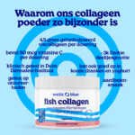 Collageen hydrolysaat betekent dat het viscollageen in kleinere stukjes eiwit is geknipt (gehydrolyseerd), de zogenaamde peptiden. Elk collageen supplement (poeder of capsules) is een hydrolysaat. In ons lichaam knippen we de peptiden verder in losse aminozuren die in het bloed worden opgenomen. De reden waarom Arctic Blue voor viscollageen kiest, is dat deze het meest vergelijkbaar is met menselijk collageen, wat hier wordt uitgelegd. Daarnaast is Arctic Blue het enige merk met een keurmerk voor het collageen poeder, dat bewijst dat het afkomstig is van wilde vis (en niet van bijv. kweek-tilapia of koeien).