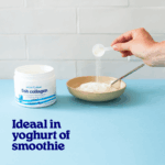 Dat maakt niet zoveel uit. Zelf geef ik de voorkeur aan een schepje in mijn ochtendkwark met havermout. Maar je kunt het ook oplossen in een kop thee, water of sap/smoothie.